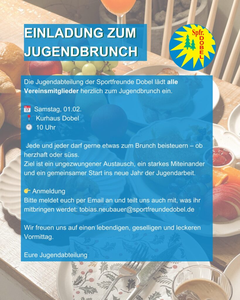 Die Jugendabteilung der Sportfreunde Dobel lädt alle Vereinsmitglieder herzlich zum Jugendbrunch ein:
