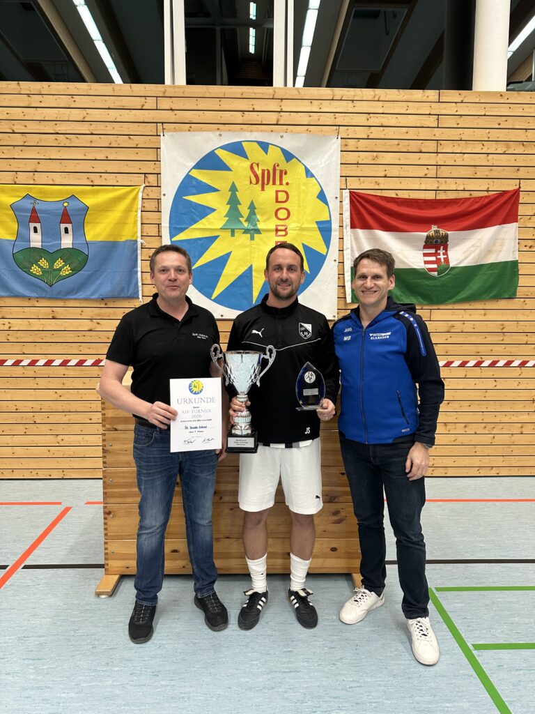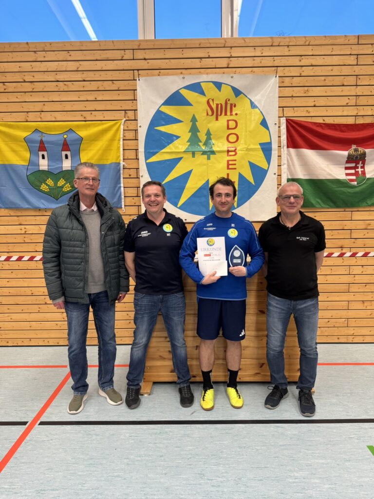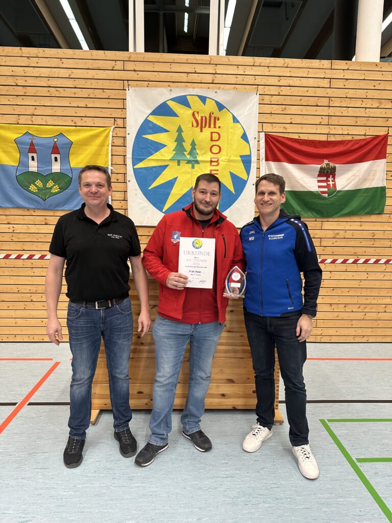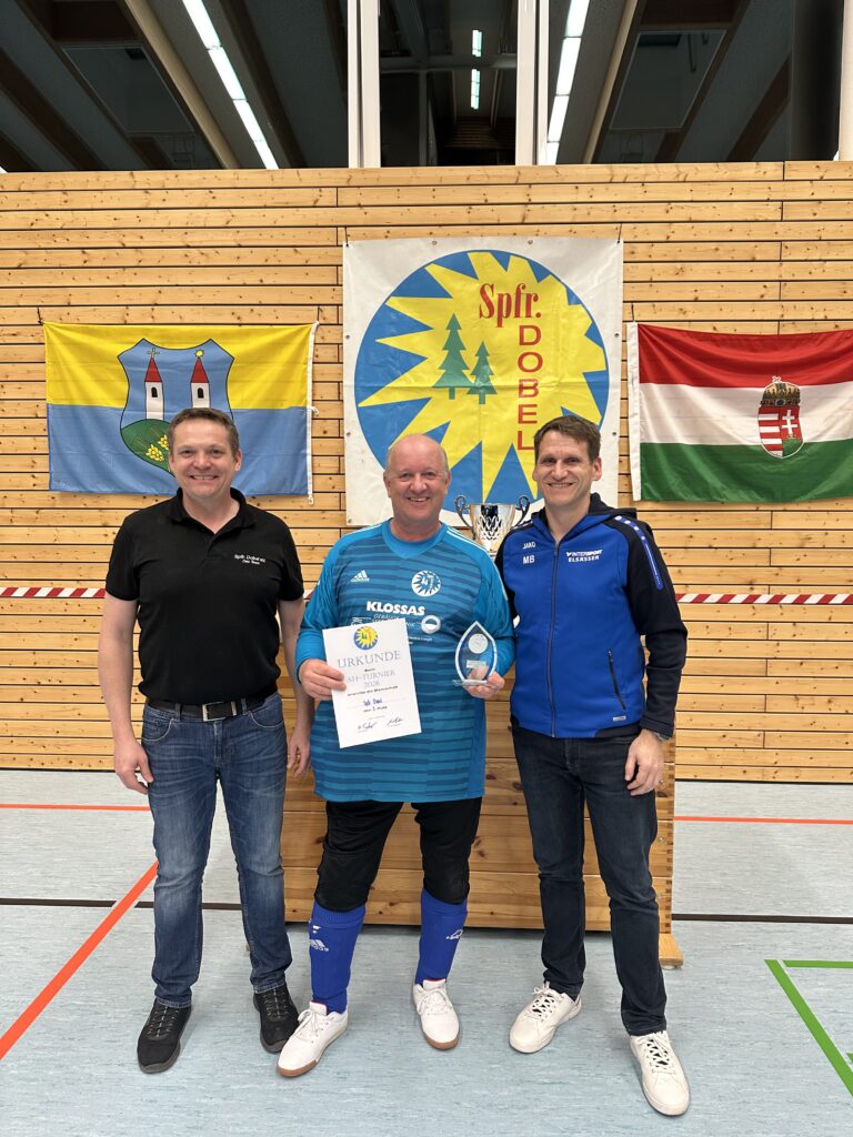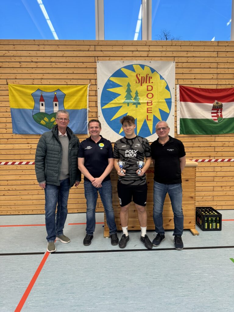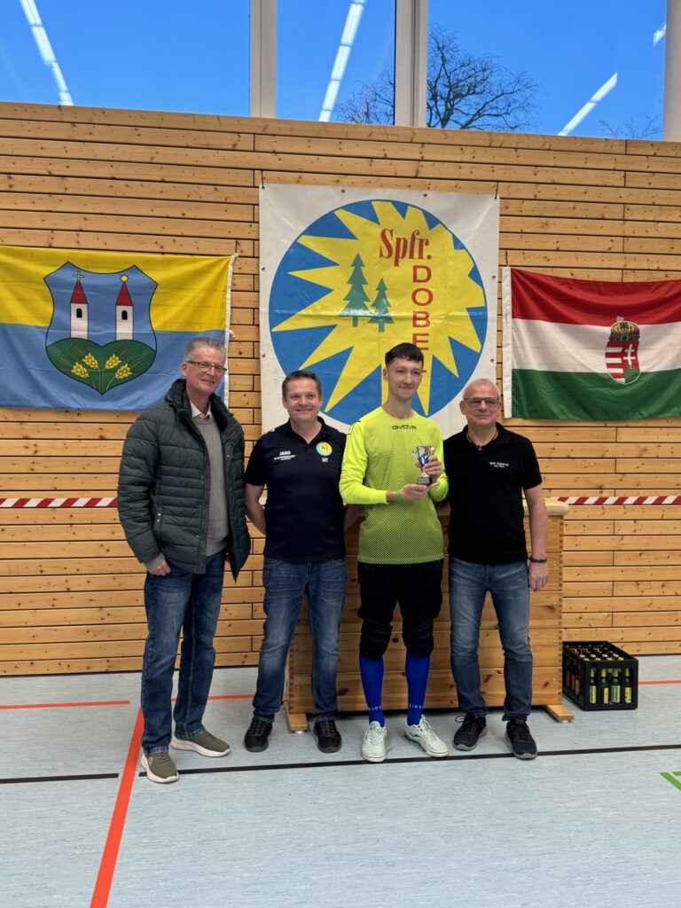 Geleitet wurden die Spiele von den Schiedsrichtern Sven Lehmann, Raphael Kastner und Vincent Becker, die mit souveränen Entscheidungen und klarer Linie für einen reibungslosen Ablauf sorgten. Als bester Spieler und zugleich bester Torschütze des Turniers wurde Jan Finkbeiner vom JFV Straubenhardt U19 ausgezeichnet, der mit insgesamt 12 Treffern herausragte. Die Auszeichnung als bester Torhüter erhielt Daniel Bakony von Tótvázsony, der mit starken Paraden mehrfach spielentscheidend eingriff. Ein schöner Moment der Hallentage war zudem die Geste von Sven Lehmann, welcher sein Präsent Tobias David vom SV Ottenhausen überreichte, der für sein außergewöhnliches und langjähriges Engagement im vergangenen Jahr vom badischen Verband geehrte wurde. Dies unterstreicht die Bedeutung des Ehrenamts im Vereinsleben eindrucksvoll.